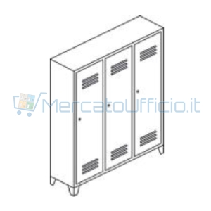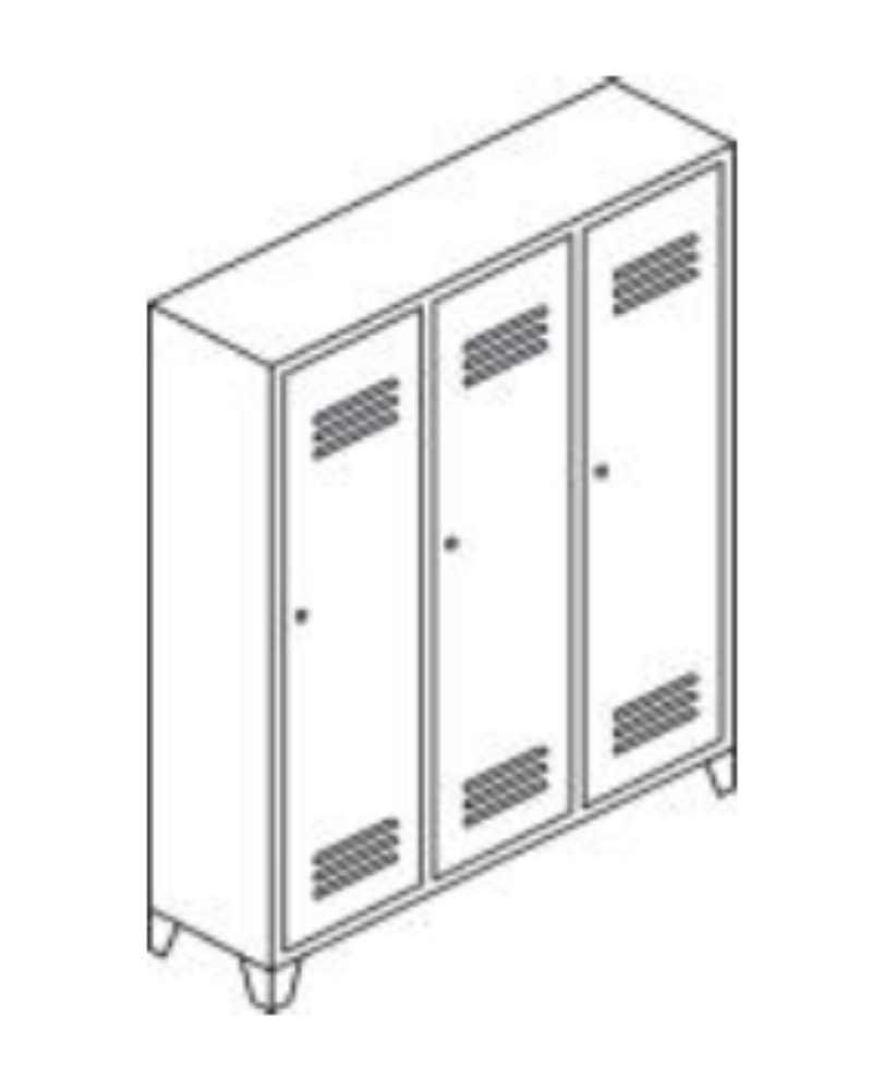 ARMADIETTO SPOGLIATOIO A 3 POSTI IN METALLO VERNICIATO GRIGIO CM 105X50X180H