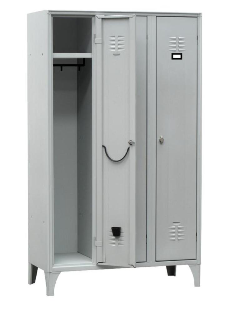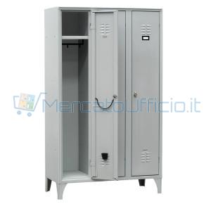 ARMADIO SPOGLIATOIO A 3 VANI, MONOBLOCCO IN METALLO VERNICIATO GRIGIO CM105X35X180H