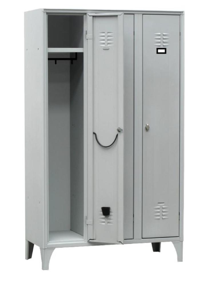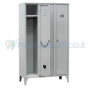 ARMADIO SPOGLIATOIO A 3 VANI, MONOBLOCCO IN METALLO VERNICIATO GRIGIO CM105X50X180H