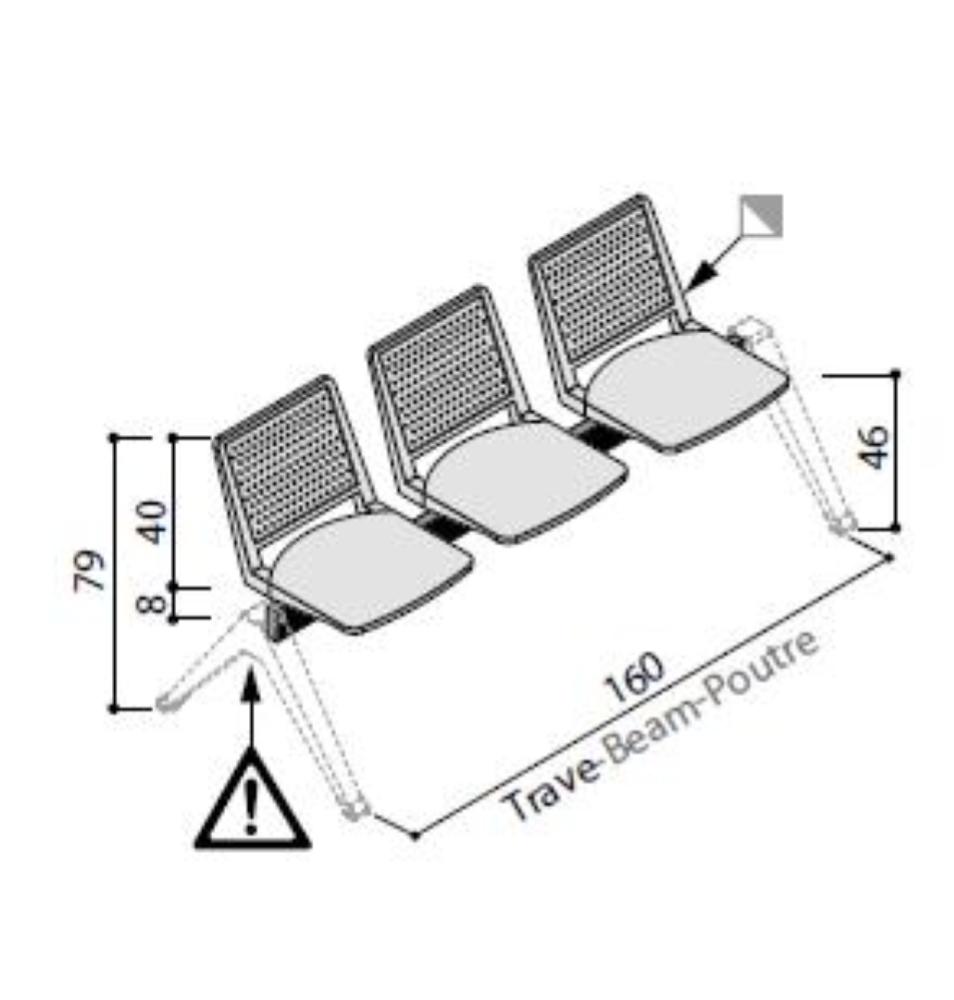 PANCA SU TRAVE A 3 POSTI CON SEDILI E SCHIENALI IN POLIPROPILENE COLORATO E GAMBE IN NYLON NERO