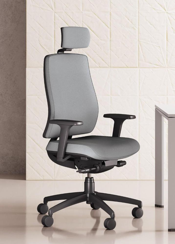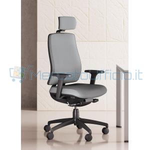 POLTRONA OPERATIVA SERIE OSCAR SU RUOTE CON BASE IN NYLON NERO, SCHIENALE ALTO CON POGGIATESTA, BRACCIOLI IN POLIPROPILENE NERO REGOLABILI IN ALTEZZA E PROFONDITA', GAS SYNCHRON TRASLATORE, SUPPORTO LOMBARE REGOLABILE IN ALTEZZA (TESSUTO CAT.G)